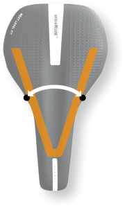 Gerade für Menschen mit gut beweglichem Becken und Fahrer in sportlichen oder renn-dynamischen Positionen sind Rennrad Sättel mit „Aussparung“ sehr wichtig. Egal ob grundsätzliche T-Form oder V-Form, in beiden Fällen ist es wichtig, dass das Becken in der Dynamik der Bewegung situativ oder eben dauerhaft nach vorne rotieren kann OHNE PERINALEN DRUCK zu erleiden.